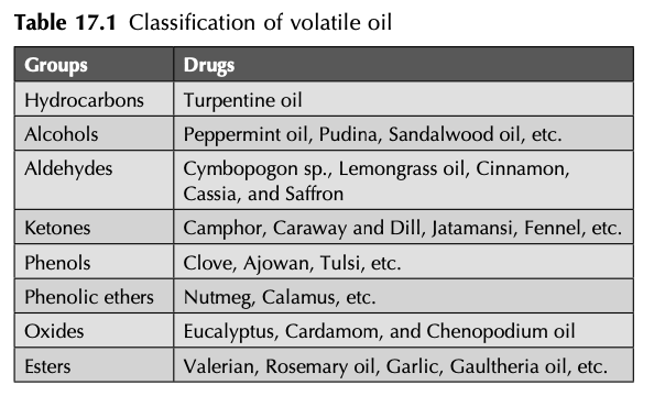 Volatile oils are odorous volatile principles of plant and animal source, evaporate when exposed to air at ordinary temperature, and hence known as volatile or etheral oils. These represent essence of active constituents of the plant and hence also known as essential oils. In most instances the volatile oil preexists in the plant and is usually contained in some special secretory tissues, for example, the oil ducts of umbelliferous fruits, the oil cells, or oil glands occurring in the sub-epidermal tissue of the lemon and orange, mesophyll of eucalyptus leaves, trichomes of several plants, etc.